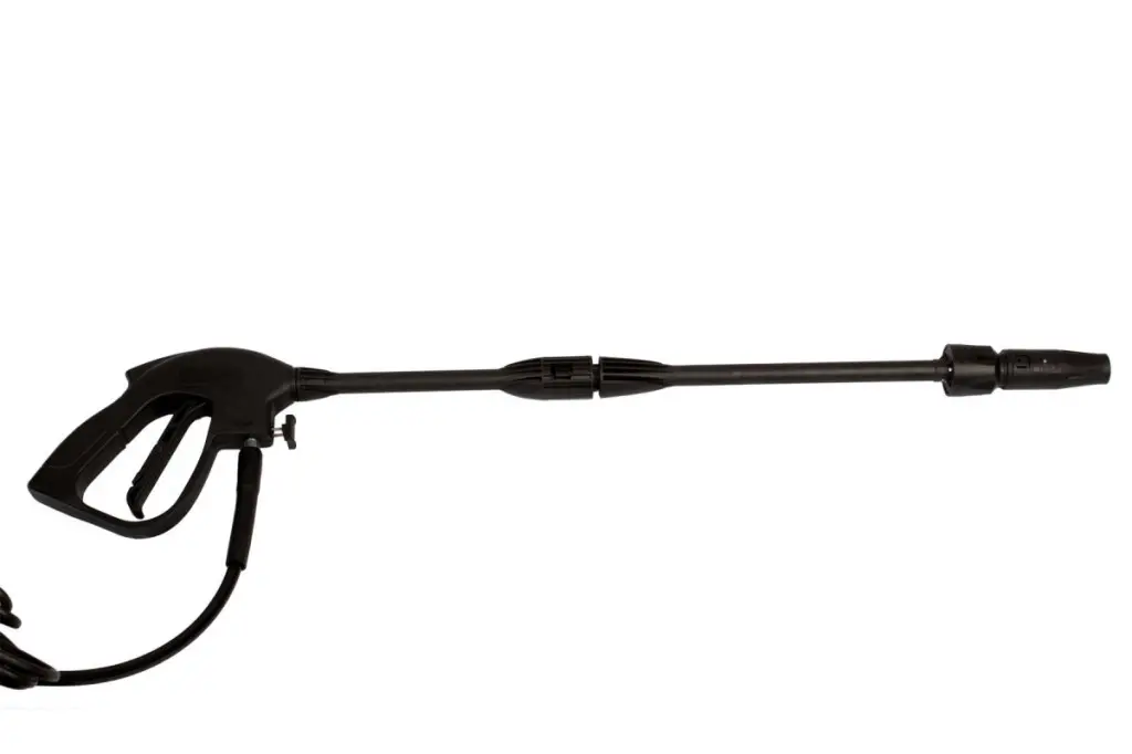 Prvá časť s rukoväťou a spúšťou má na sebe prípojnú krátku hlaveň, do ktorej pripojíme predlžovací nástavec a do nej potom môžeme pripojiť rozstrekovač, ktorým usmerňujeme a regulujeme silu a prúd vody. Pre čistenie trysiek nájdete v balení ihlový čistič usadenín.