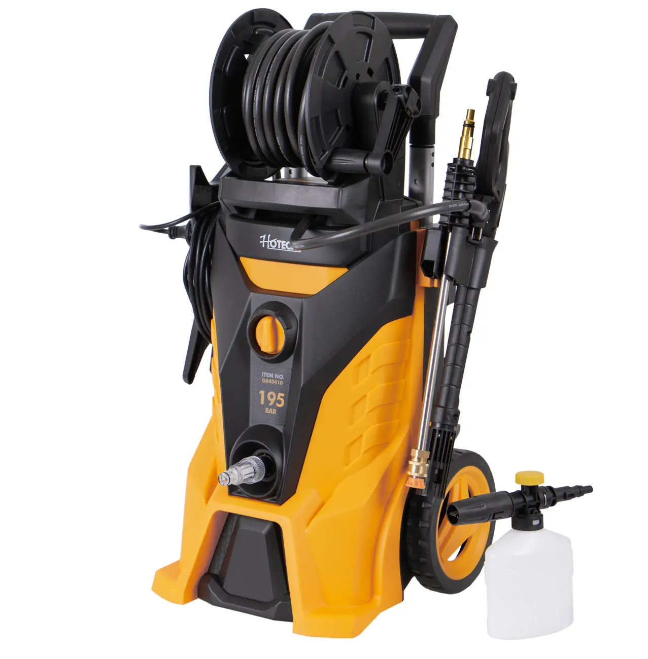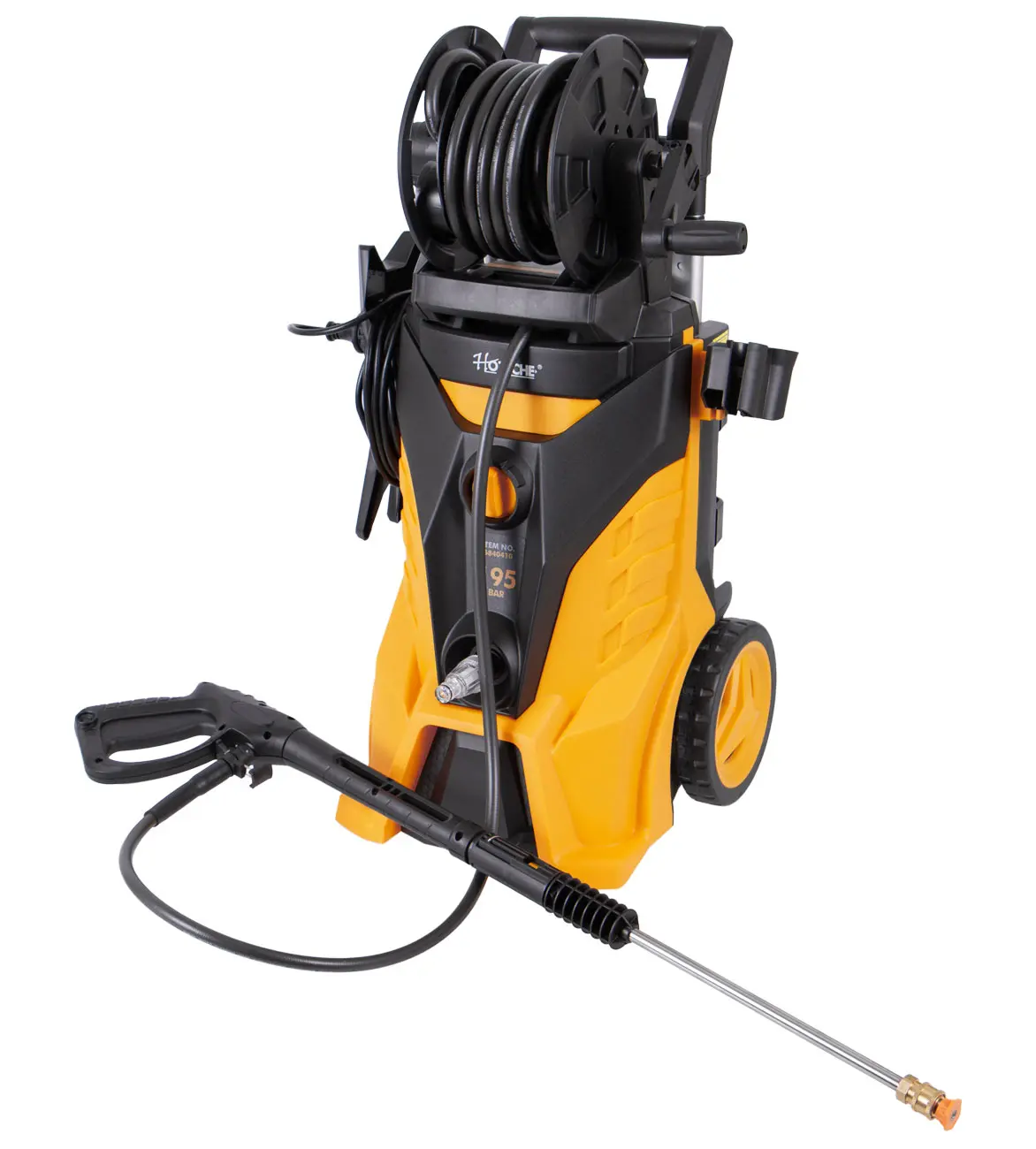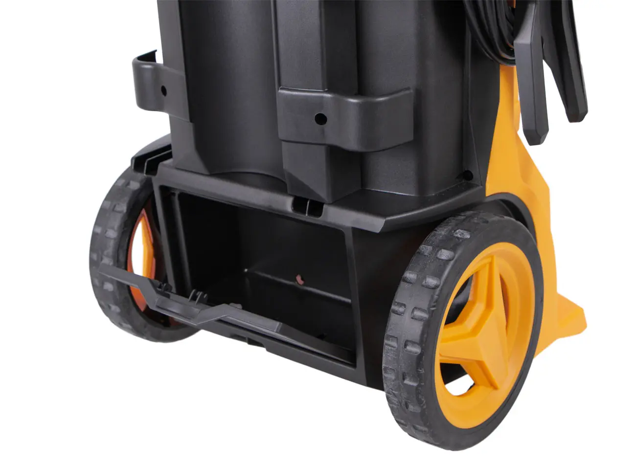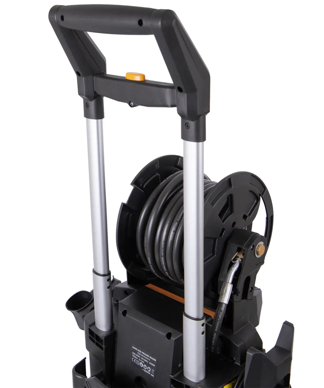 Vybavenie zahŕňa: rýchlospojku na pištoľ aj hadicu, praktické transportné kolieska, teleskopickú rukoväť, 10-metrovú vysokotlakovú hadicu, prívodný kábel 5 m, kovové trysky, penovač a filter na vstupe vody.