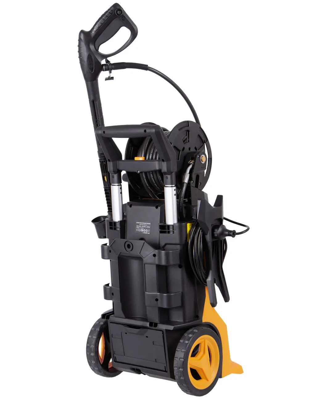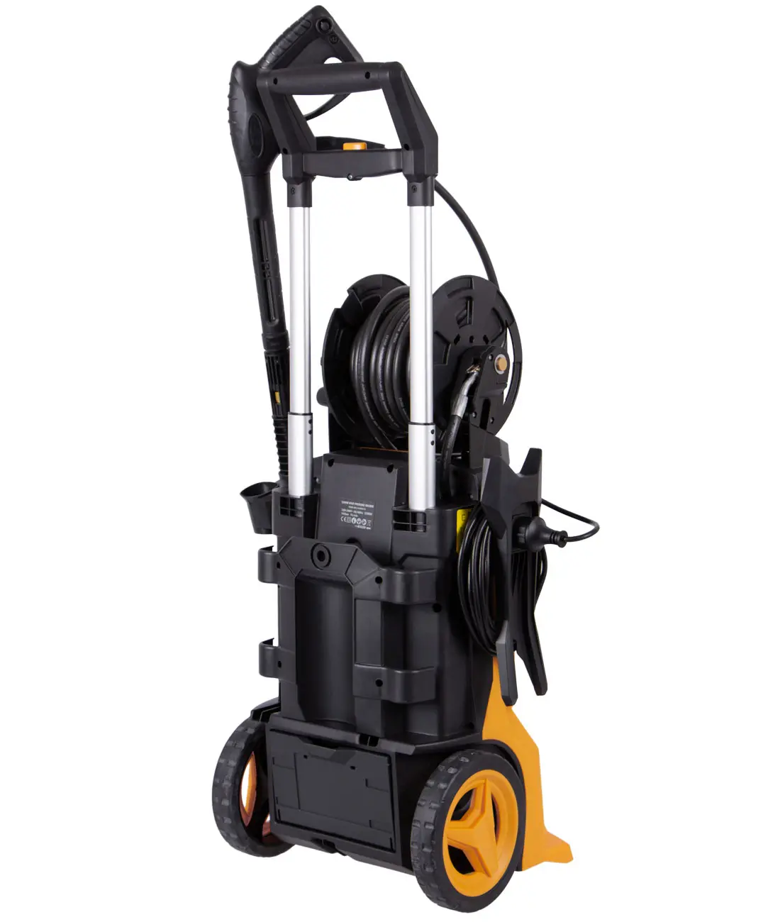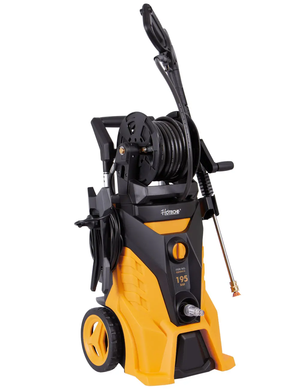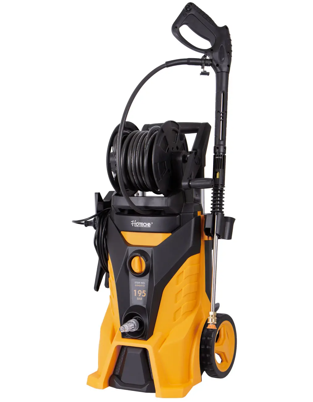 Vybavenie zahŕňa: rýchlospojku na pištoľ aj hadicu, praktické transportné kolieska, teleskopickú rukoväť, 10-metrovú vysokotlakovú hadicu, prívodný kábel 5 m, kovové trysky, penovač a filter na vstupe vody.