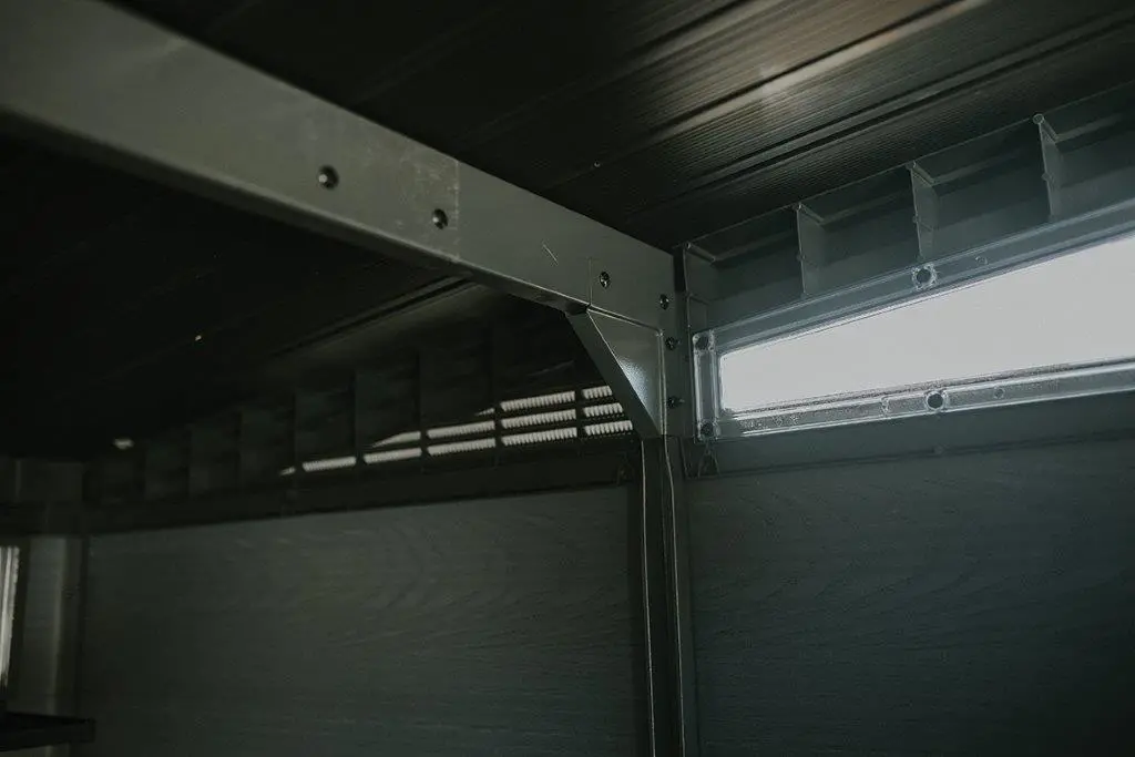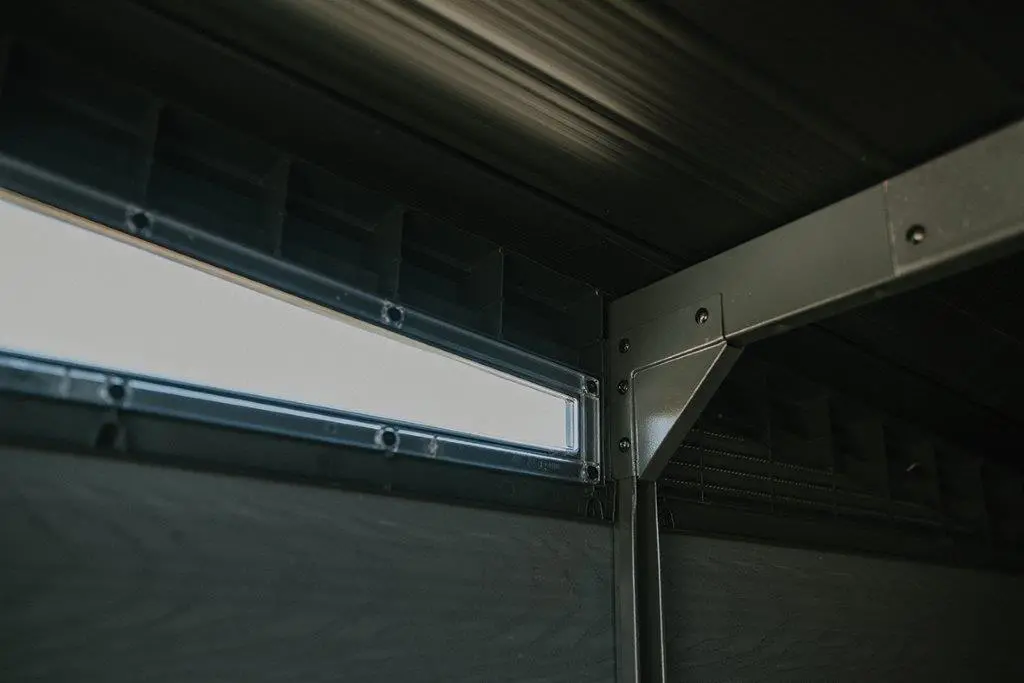 Záhradný domček má pevne vystuženú oceľovú strechu, ktorá znesie zaťaženie až 200 kg/m². Bez problémov tak zvládne aj vrstvu snehu. Domček má dvojité dvere a malé okienka, ktoré prepustia slnečné svetlo. Výrobca nezabudol ani na vhodný ventilačný systém, ktorý zaisťuje cirkuláciu vzduchu a bráni vlhkosti. Predné dvere sú vybavené západkou na visací zámok pre vyššiu bezpečnosť.