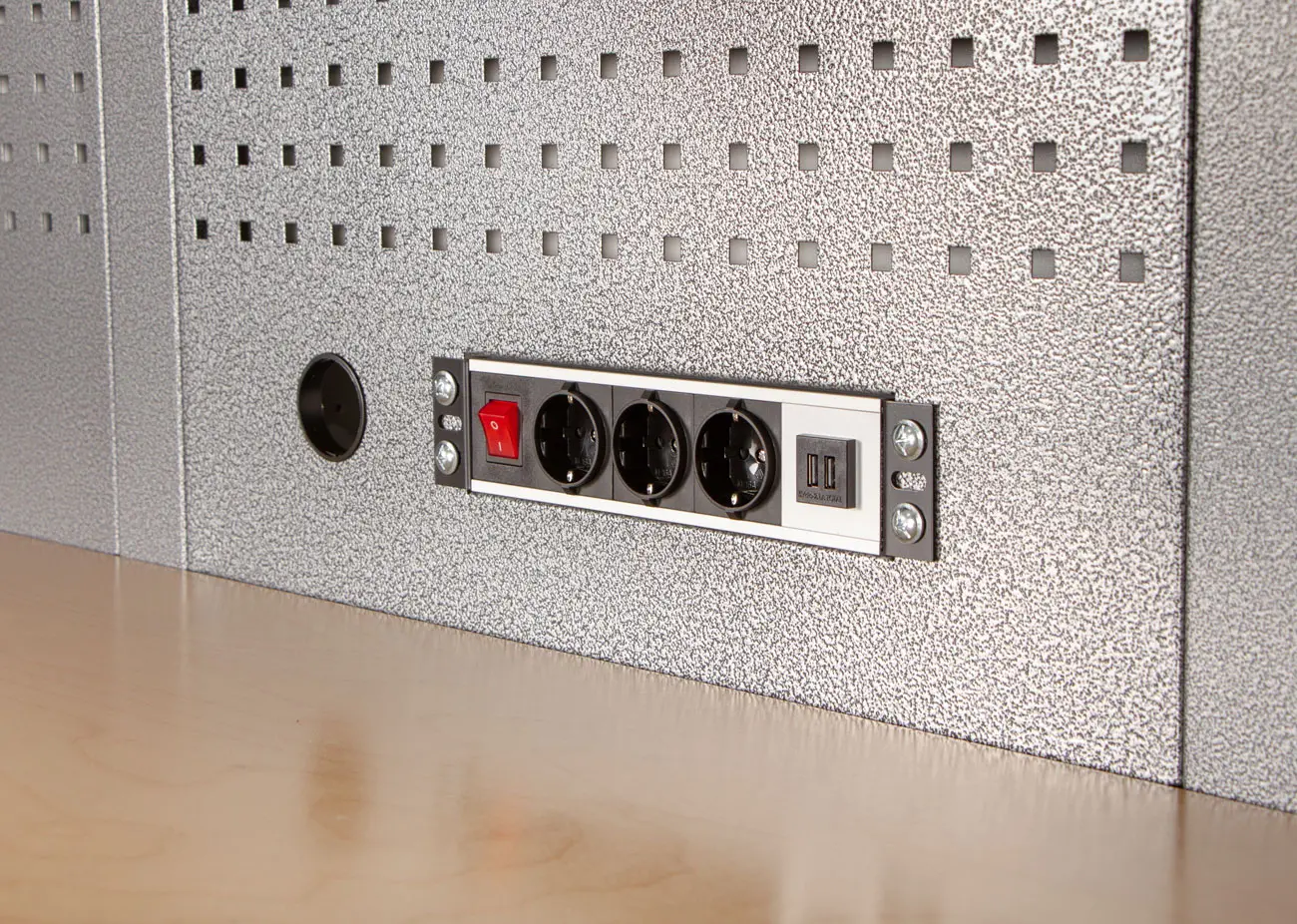 • Dierovaná závesná doska s elektrickou zásuvkou a vypínačom.