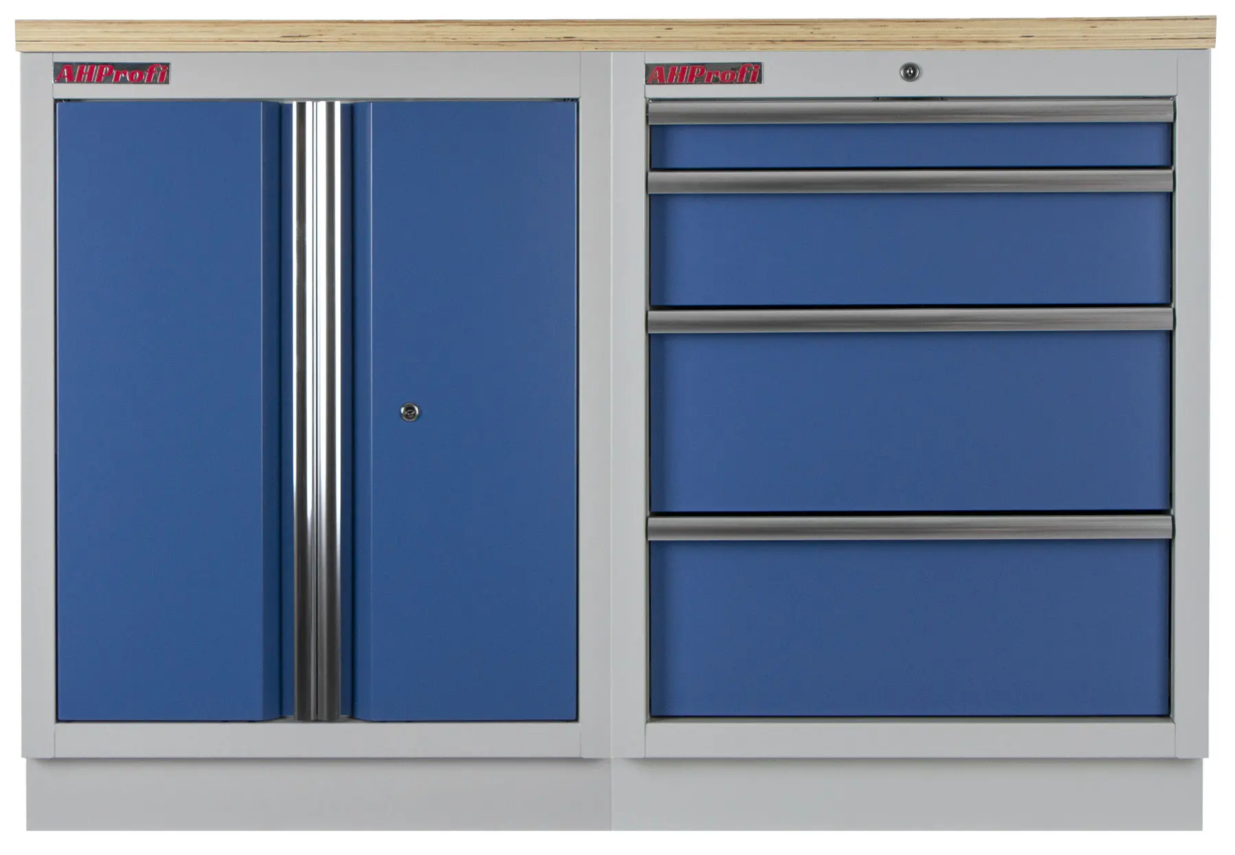 Dielenský nábytok PROFI BLUE s drevenou doskou zaujme moderným a profesionálnym vzhľadom. Kombinácia modrej RAL 5023 a šedej RAL 7035 sa bude vynímať v každej garáži aj dielni. Zostava nábytku v sebe skrýva dostatočné množstvo úložného priestoru pre vaše náradie, autotechniku aj dielenské vybavenie. V kombinácii s robustnou pracovnou doskou získate multifunkčnú stenu, s ktorou vám práca pôjde od ruky vo všetkých smeroch. Jednotlivé komponenty sú plne konfigurovateľné, zostavu je možné podľa vašich potrieb rozšíriť o ďalšie skrine, regály aj pracovné stoly.Zostava nábytku MTGS1300BAL07