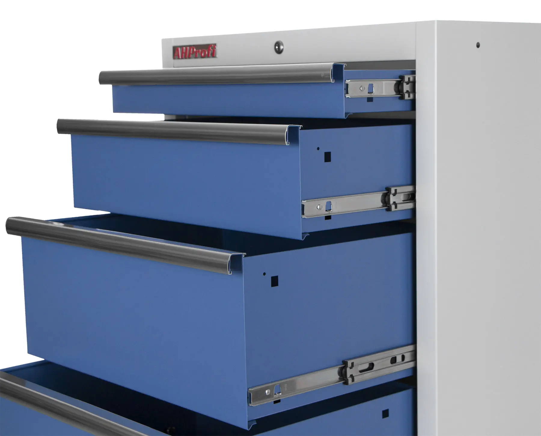 Zásuvky dielenského nábytku PROFI majú vysoko kvalitné pojazdy s guličkovými ložiskami, ktoré poskytujú plynulosť a presnosť pojazdu zásuviek aj pri plnom zaťažení. Max. nosnosť zásuvky je 30 kg.